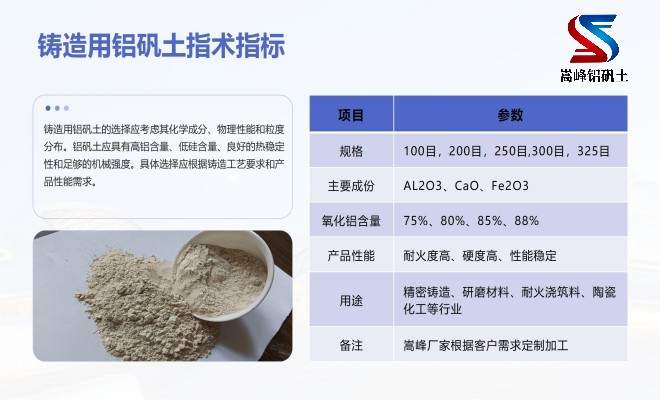 為了保證所選產品的綜合性能滿足鑄造行業的高標準和要求,在選擇優質的鋁礬土粉時,需要注意幾個關鍵因素。鋁礬土粉的質量通常與其礦石的純度和成分密切相關。優質鋁礬土礦石應具有較高的鋁含量和較低的雜質,能有效提高鑄件的強度和耐磨性。